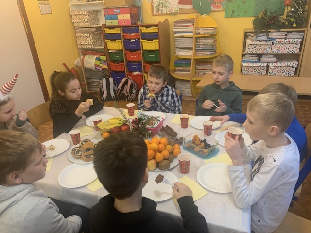 Uczniowie klasy 3 uczestniczyli w Klasowej Wigilii. Zgodnie z piękną polską tradycją podzieli się opłatkiem i złożyli życzenia, a potem przy dźwiękach kolęd i pastorałek próbowali świątecznych potraw. Mariola Gimzicka
