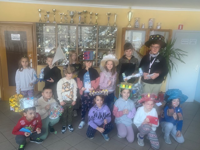 Szkolny konkurs na „Ekologiczne nakrycie głowy z odpadów” dobiegł końca. Takie ekologiczne nakrycia głowy to potrawa magiczna, która wyczarowuje z niepozornych rzeczy niesamowite efekty. Uczniowie musieli połączyć razem wiedzę o recyklingu, ekologii, rywalizację, dobrą zabawę i kreatywność. Zbierali gazety, foliowe reklamówki, kolczugi z opakowań do