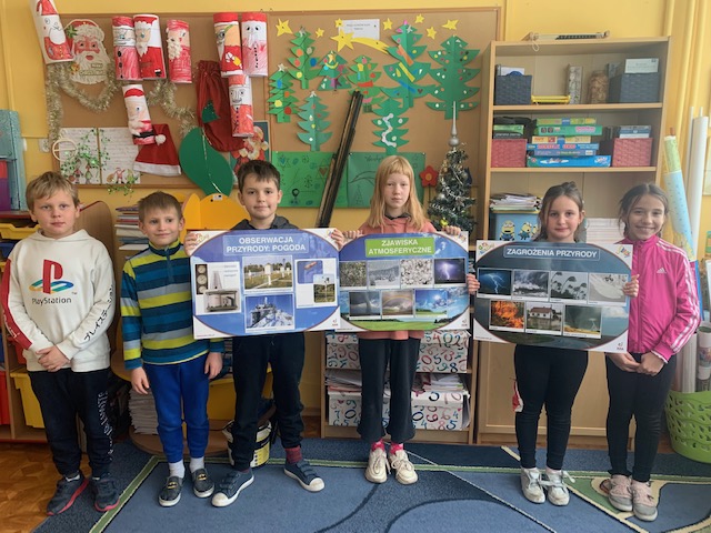 Na zajęciach przyrodniczych w ramach realizacji projektu: „Gmina Mieroszów Równa w  Kompetencjach” uczniowie zdobywają wiedzę na temat  składników pogody, niebezpiecznych zjawisk przyrodniczych oraz prowadzą kalendarz pogody. Poznają budowę ucha i oka, składając poszczególne elementy. Ciekawość dzieci i ich chęć działania sprzyjają zapamiętywaniu i poznawaniu nowych
