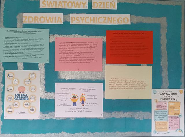 Światowy Dzień Zdrowia Psychicznego obchodzono po raz pierwszy 10 października 1992 r. Dzisiaj w przedszkolu poruszony został bardzo ważny temat. Po wysłuchaniu bajki dzieci rozmawiały z panią pedagog nt. zdrowia psychicznego. Światowy Dzień Zdrowia Psychicznego oficjalnie obchodzony co roku 10 października, powstał z inicjatywy Światowej