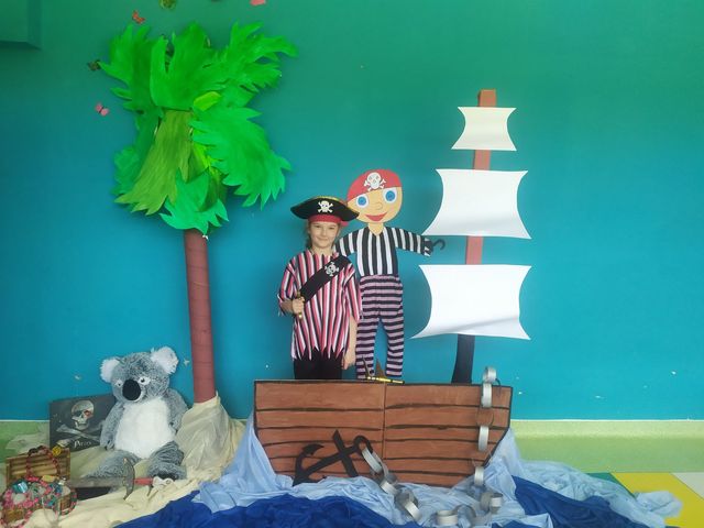 Dzień Dziecka spędziliśmy w przedszkolu w klimatach pirackich, właściwie to ekopirackich…. Nie jesteśmy morskimi rozbójnikami, za to chętnie troszczymy się o naszą planetę i mieszkające na niej istoty. Mieliśmy dziś mnóstwo pirackich atrakcji – fotobudkę, pasowanie na pirata, balonowe szable pirackie oraz tatuaże. Nie