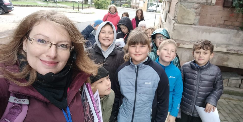 W ramach lekcji plastyki, uczniowie klasy 4 uczestniczyli w zajęciach dotyczących poznawania architektury Sokołowska. Spacer poprowadziła przewodnik sudecki pani Anna Trzuskolas z Instytutu  Książęcy Kamień. Projekt dofinansowano z Urzędu Marszałkowskiego Województwa Dolnośląskiego.  Podczas spaceru uczniowie wyszukiwali budowli  i elementów budynków oraz poznawali   terminologię architektoniczną. W