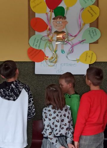 W niedzielę 20 listopada obchodziliśmy ważne święto Międzynarodowy Dzień Praw Dziecka. To okazja, żeby przypomnieć sobie, że każdemu dziecku, niezależnie od jego pochodzenia, miejsca zamieszkania, koloru skory czy wyznania, przynależą takie same prawa. Na tą okoliczność Samorząd Uczniowski przygotował apel, a klasa V wykonała kolorowy plakat o prawach dziecka. Zdjęcia w trakcie apelu wykonano aparatem fotograficznym zakupionym w ramach rządowego programu “Laboratoria Przyszłości”.